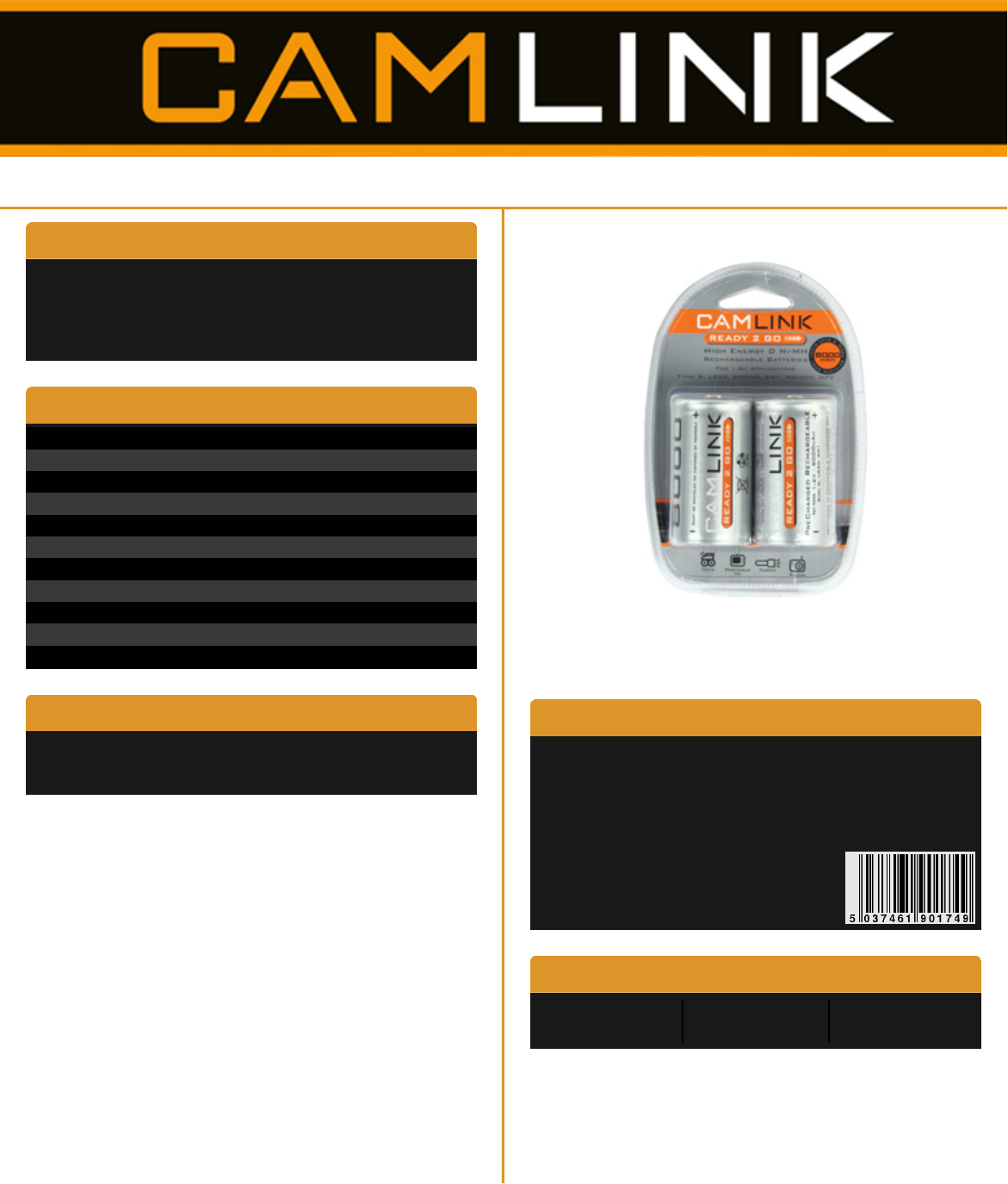 • Camlink D Cell 8000mAh Ni MH Ready to Go pre charged