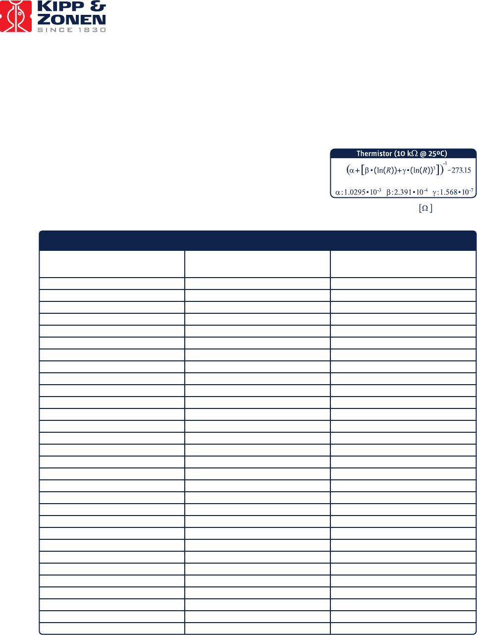 YSI Thermistor 44031 - Resistance versus Temperature in °C