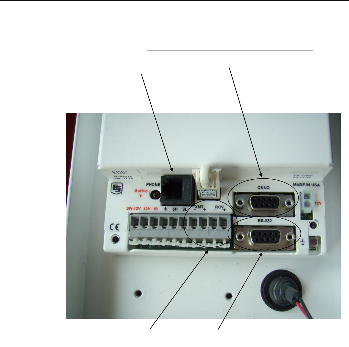 FIGURE 2-23. Close-up of the terminals and 9-pin ports in the T107
