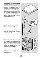 the furniture door to the front of the washer using the hinges. Place the spacers under the hinges (I) and then fix in position with screw (H). EN l Mount H I We suggest mounting the furniture door so that it opens towards the left, which is the same direction as the porthole door. This will leave more space when you are loading washing into the appliance. l Slide the washer into an opening of the size indicated in the diagram opposite.
