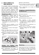 l Træk stikket ud. 4. RENGØRING OG VEDLIGEHOLDELSE l Frigør røret fra stroppen, sænk det ned For at rengøre vaskemaskinens ydre, så brug en fugtig klud, og undgå skurepulver, alkohol og/eller opløsningsmiddel. Vaskemaskinen behøver ikke nogen speciel behandling ved normal rengøring: rengør bakkerummet og filteret; tips til flytning af maskinen eller ved længere tids manglende brug findes nedenfor. og dræn al vandet ned i et kar. l Fastgør afløbsrøret med stroppen bagefter.