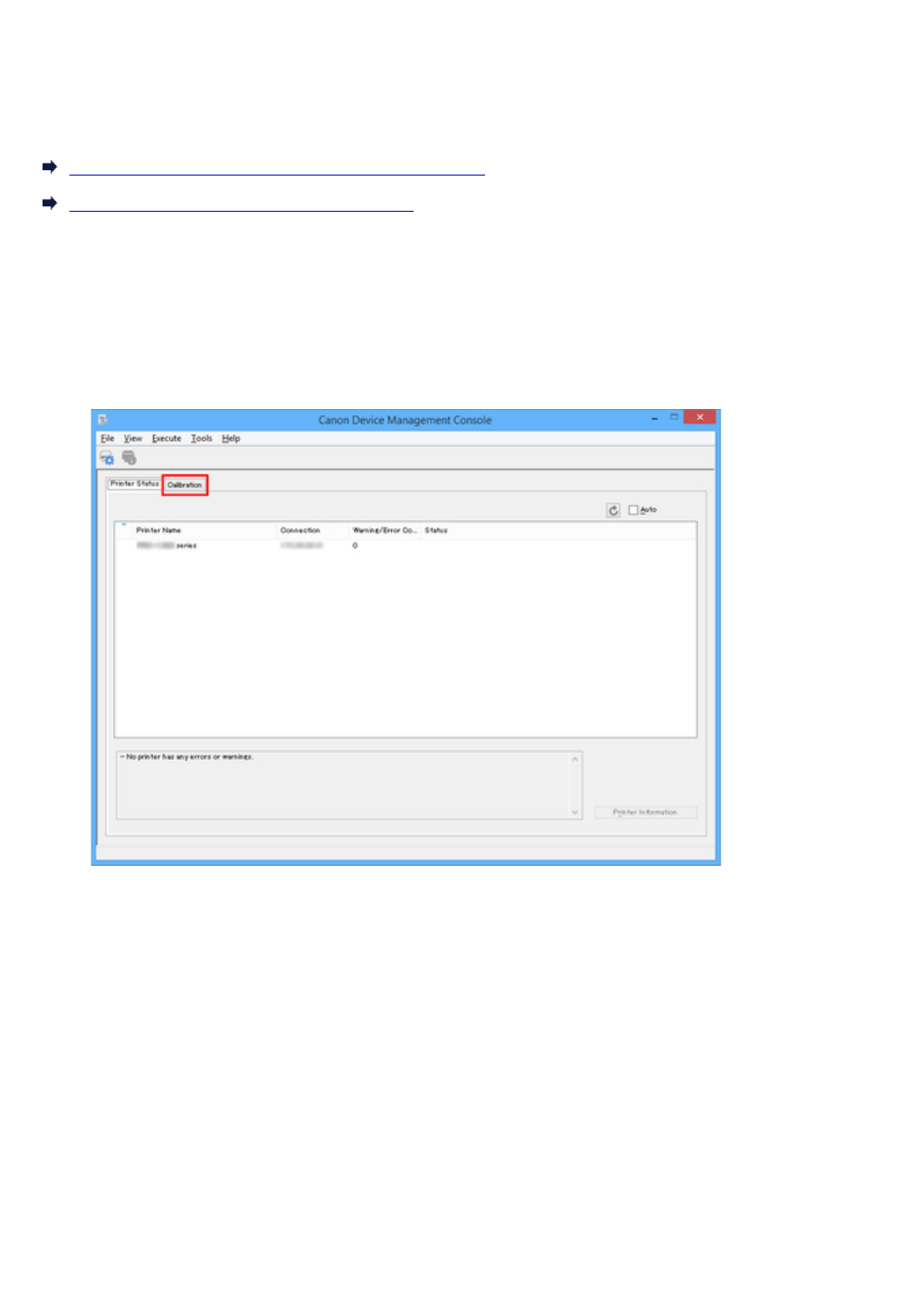 Use the Calibration sheet on the main screen to check the recommended level of color calibration