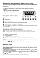 The programmer is equipped with an electronic clock with lighted numbers which indi-