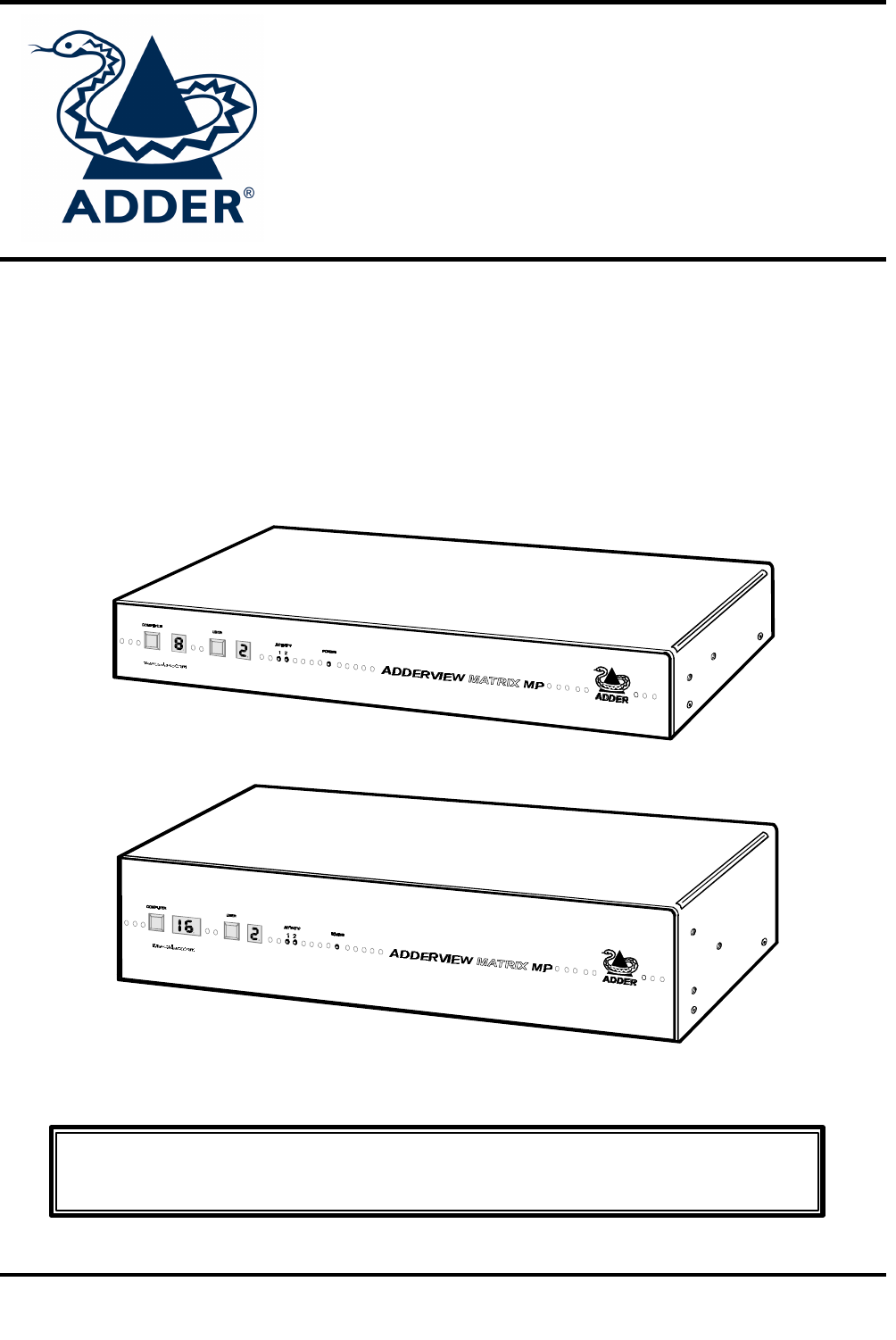 AdderView MATRIX MP Installation and Use Part Model AVM208MP AdderView Matrix – 2 user ports and 8 computer ports AdderView Matrix – 2 user ports and 16 computer ports AVM216MP An electronic version of this manual may be downloaded from www.adder.