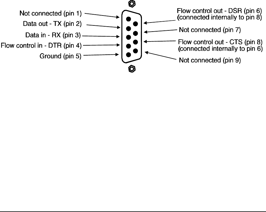 The 9-pin female RS232 connector at the rear of the AdderView has the following