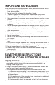IMPORTANT SAFEGUARDS When using electrical appliances, basic safety precautions should always be followed, including the following: 1 Read all instructions. 2. Do not touch hot surfaces. Use handles or knobs. 3. To protect against fire, electric shock and personal injury, do not immerse cord, plugs, or appliance in water or other liquid. 4. Close supervision is necessary when any appliance is used by or near children. 5. Unplug from outlet when not in use and before cleaning.