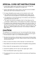 SPECIAL CORD SET INSTRUCTIONS 1. A short power supply cord is provided to reduce risks resulting from becoming entangled in or tripping over a longer cord. 2. Longer detachable power-supply cords or extension cords are available and may be used if care is exercised in their use. 3. If a longer detachable power-supply cord or extension cord is used, a. The marked electrical rating of the detachable power-supply cord or extension cord must be as great as the electrical rating of the appliance, b.