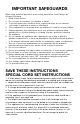 IMPORTANT SAFEGUARDS When using electrical appliances, basic safety precautions should always be followed, including: 1. Read all instructions. 2. Do not touch hot surfaces. Use handles or knobs. 3. To protect against fire, electrical shock or personal injury, do not immerse cord, plugs or appliance in water or other liquid. 4. Close supervision is necessary when any appliance is used by or near children. 5. Unplug appliance from outlet when not in use and before cleaning.