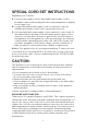SPECIAL CORD SET INSTRUCTIONS Regarding your Cord Set: A. A short power-supply cord (or detachable power-supply cord) is provided to reduce risks resulting from becoming entangled in or tripping over a longer cord. B. Longer detachable power-supply cords or extension cords are available and may be used if care is exercised in their use. C.