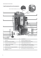 Control elements and accessories 1 2 3 4 5 6 7 8 Symbol display Maintenance field 1 Symbol display 5 Maintenance indicator 2 Rotary Switch 6 Access door 3 Light segments 7 Maintenance field 4 Symbols 8 Indicators a s d f g h j k 1 Espresso 2 Espressos 1 coffee 2 coffees On/off Maintenance y x c v b n Water tank Coffee grounds container Bean container Cleaning button Descaling button Filter button Pre-ground coffee Steam 5