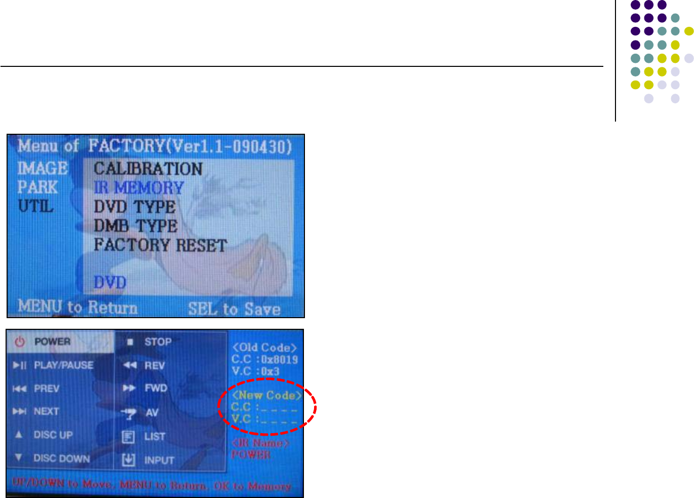 IR Memory Function? If user would like to control DVD or DMB by touch, User