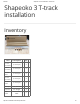5/3/2018 Shapeoko 3 T-track installation - Carbide 3D Shapeoko 3 T-track installation Inventory Item Description 1-1/4” Hex Bolt (1/4-20 tpi) - 4 1-3/4” Hex Bolt (1/4-20 tpi) - 4 2” Hex Bolt (1/4-20 tpi) - 4 2-1/4” Hex Bolt (1/4-20 tpi) - 4 Thumb Nuts (1/4-20 tpi) - 4 1”x4”, Red Oak - 4 Clamps T-tracks Side Filler Qty 23” length - 3 3-1/2” x 23”, MDF - 2 http://docs.carbide3d.