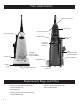 Parts Identification Quick cord release Power cord Cord storage hooks Bag compartment On/Off switch Easy-carry handle Accessory attachment opening Nozzle inlet Tools (CPU-75T AND CPU-85T ONLY) Headlight (CPU-75 AND CPU-75T ONLY) Blow molded hose Handle release Furniture guard Self-adjusting nozzle Thermal reset button Replacement Bags and Filters • Genuine Carpet Pro Vacuum Bags Part number 06.144 6 per package • Genuine Carpet Pro Secondary Filter Part number 06.