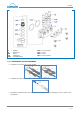 Draai de knoppen (8) van de pomp los en haal de twee onderdelen (202 en 39) uit elkaar.