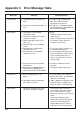 Error Message Table Message Stk ERROR Countermeasure Meaning • Execution of calculations that exceed the capacity of the stack for numeric values or stack for commands. • • Mem ERROR • • • • • • • • • Appendix C Not enough memory to input a function into function memory. Not enough memory to create a matrix using the specified dimension. Not enough memory to hold matrix calculation result. Not enough memory to store data in list function. Not enough memory to input coefficient for equation.