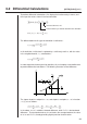 3-2 Differential Calculations This average, which is called the central difference, is expressed as: 1 f (a + Ax) – f (a) f (a) – f (a – Ax) f '(a) = –– ––––––––––––– + ––––––––––––– 2 Ax Ax f (a + Ax) – f (a – Ax) = ––––––––––––––––– 2Ax u To perform a differential calculation Example To determine the derivative at point x = 3 for the function y = x3 + 4 x2 + x – 6, when the increase/decrease of x is defined as Ax = 1E – 5 Input the function f(x).