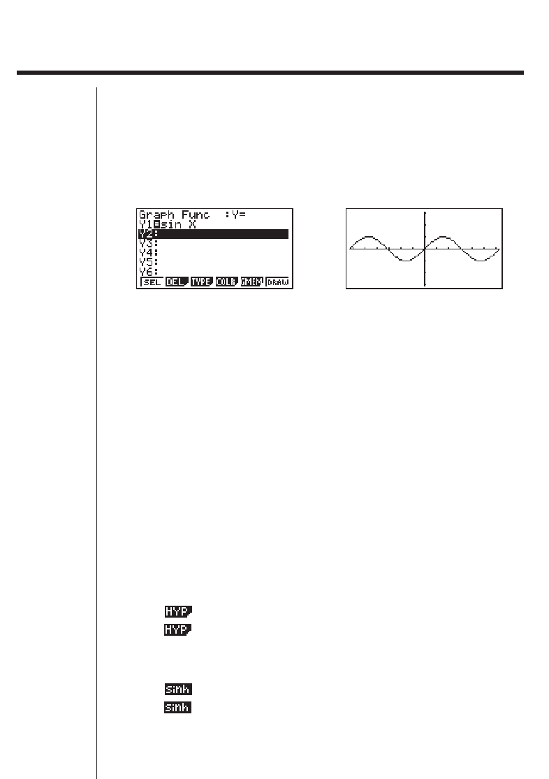 Selecting displays a menu of hyperbolic functions.
