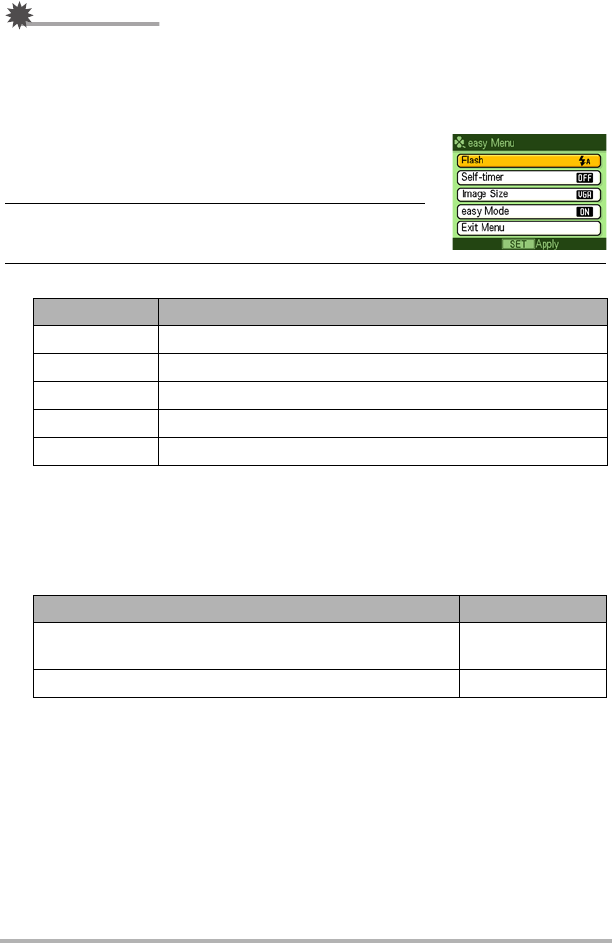 • To use the Set Up tab menu (page 132), you need to exit the easy mode. To do