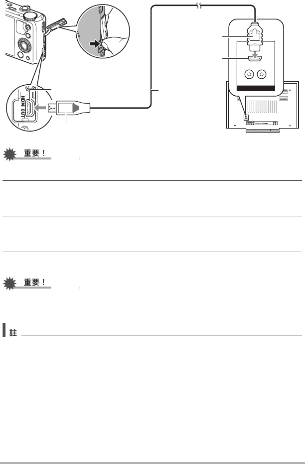 • 將相機連接至其他裝置的HDMI接頭可能會導致相機及該裝置損壞。切勿將兩個HDMI