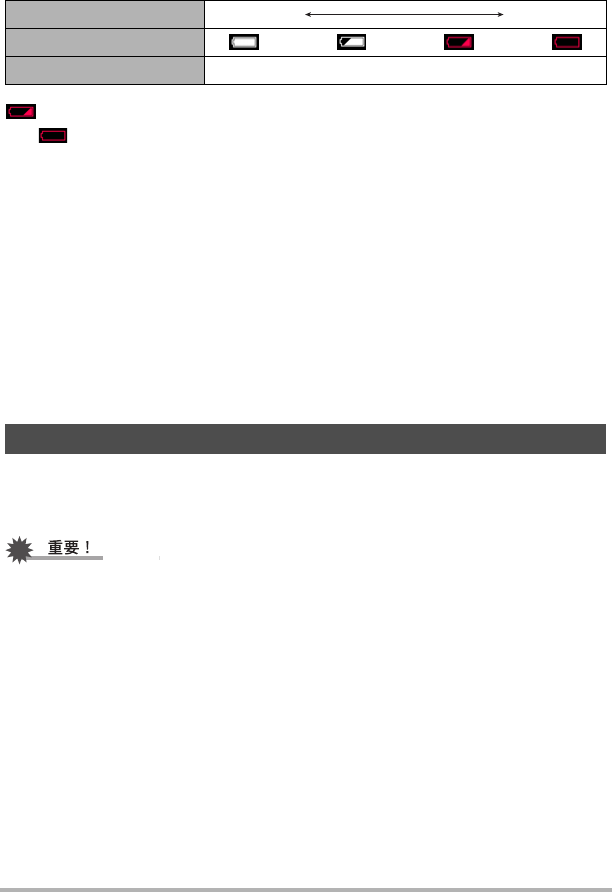 表示電量不足。請儘快對電池充電。