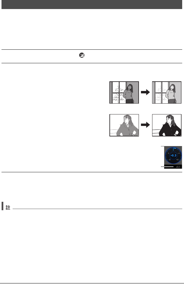 即會套用曝光補償值。您所設的曝光補償值將持續有效,直到您變更該值或關閉相