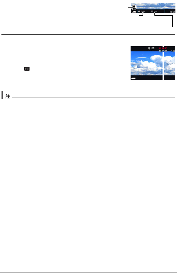 顯示剩餘的拍攝時間。