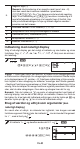 1 – 4 = 1 = 0,2 5 5 1 4 5 1 1Y5 f 0.2 Vigtigt: • Alt afhængig af den type udregningsfacit, der vises på displayet når du trykker på 5-tasten, kan omregningsprocessen tage en del tid at udføre. • For nogle udregningsfacitter vil den viste værdi ikke blive omregnet ved at trykke på 5-tasten. • Det er ikke muligt at skifte fra decimalformat til blandet brøkformat, hvis det samlede antal cifre, som anvendes i den blandede brøk (inklusive heltal, tæller, nævner og skilletegn) er større end 10.