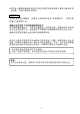 預知事項 • 本計算器是用精密的配件所製成,請絕對不要將其拆解。 • 避免掉落計算器和使其受到其他強烈撞擊。 • 不要將計算器保存或放置於高溫或高濕度或灰塵多的地方。暴露於低溫 時,計算器可能需要更多時間來顯示結果,有時甚至無法操作。但一旦 將計算器帶回正常溫度時,即可使操作恢複正常。 • 在進行計算時,顯示屏會變空白,並無法操作鍵盤。因此,您在操作鍵 盤時,必須看著顯示屏以確認鍵操作準確無誤。 • 無論五年期間進行了多少計算,都必須更換一次電池。決不要讓耗盡的 電池留在電池艙內。因為電池可能會漏液並損壞本裝置。 • 不要用稀釋劑或苯之類的揮發性液體來清潔本裝置。請用柔軟的乾布, 或用浸於中性洗滌劑後絞乾了的布塊擦拭本裝置。 • 對您或任何人因使用本計算器而造成的任何損害,支出,利益損失,存 款損失,或因故障,修理,更換電池而引起的數據和/ 或公式的丟失所帶 來的任何損害,廠商和代理商一概不負任何法律責任。為防止丟失數 據,務請用戶備好數據的拷貝。 • 不要以燒毀的方式來處理電池,液晶板,或其他組件。 • 當“Low battery!(電力低下)”信息出現於顯示屏時,請盡快更換主電源 電池。 • 更換電池時,