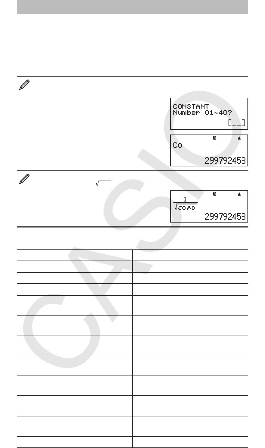 Pour entrer une constante scientifique dans un calcul, pressez 17(CONST)