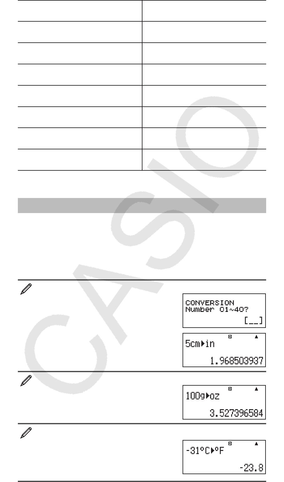 Pour entrer une commande de conversion métrique dans un calcul, pressez