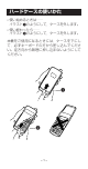 ● 落としたり,強いショックを与えないでく ださい。 ●「ひねり」や 「曲げ」 を与えないでください。 ズボンのポケットに入れるなど, 「 ひねり」や 「曲げ」を与える恐れがあることをしないでく ださい。 ● 分解しないでください。 ● ボールペンなど鋭利なものでキー操作をし ないでください。 ● お手入れの際は,乾いた柔らかい布をご使 用ください。 特に汚れがひどい場合は,中性洗剤液に浸した 布を固くしぼっておふきください。なお,シン ナーやベンジンなどの揮発性溶剤は使用しな いでください。キーの上の文字が消えたり, ケースにシミをつけてしまう恐れがあります。 –5–