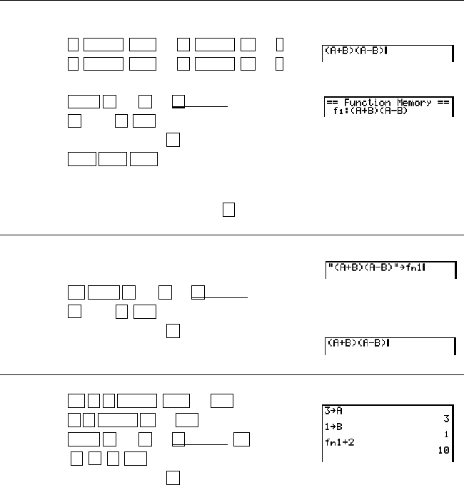 Пример Сохранить функцию (A+B)(A–B) в памяти функций под номером 1