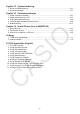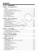 Innhold Bli kjent — Les dette først! Kapittel 1 Grunnleggende bruk 1. 2. 3. 4. 5. 6. 7. 8. 9. 10. Taster ............................................................................................................................ 1-1 Display .......................................................................................................................... 1-2 Skrive inn og redigere beregninger ...............................................................................