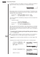 Using Calculator Functions in Programs 19 - 13 u To calculate a scalar product and add the results to another row ` Row+) (` Example 3 To calculate the scalar product of Row 2 of the matrix in Example 1, multiplying by 4, and add the result to row 3 The following is the syntax to use for this program. `Row+ 4, A, 2, 3 Matrix name Multiplier Executing this program produces the following result.