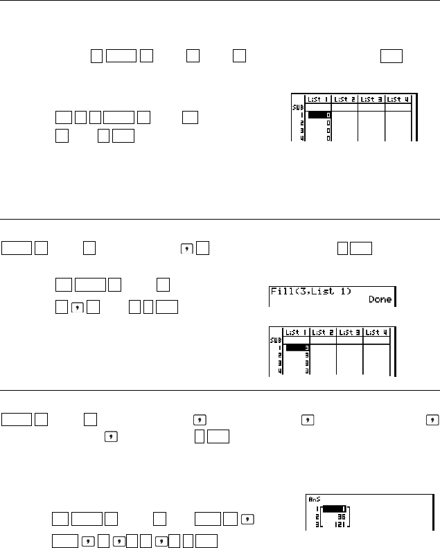 OPTN F1 (LIST) F4 (Fill) <значение> F1 (List) <номер списка 1-26> ) EXE