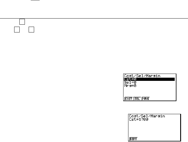 Нажмите F1 (COST) на экране Financial 2 для отображения следующего экрана ввода.