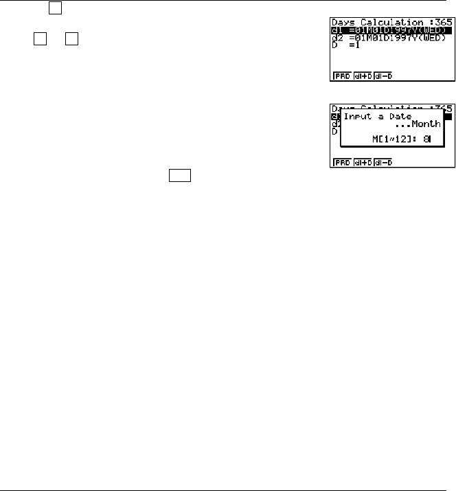 Введите месяц, день и год, нажимая EXE после ввода каждого элемента.