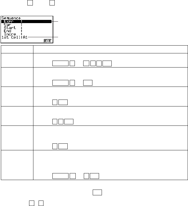 F2 (EDIT) F5 (SEQ) для отображения экрана Sequence, затем задайте выражение