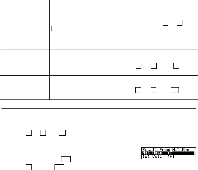Пример: вызвать данные из памяти матриц в электронную таблицу