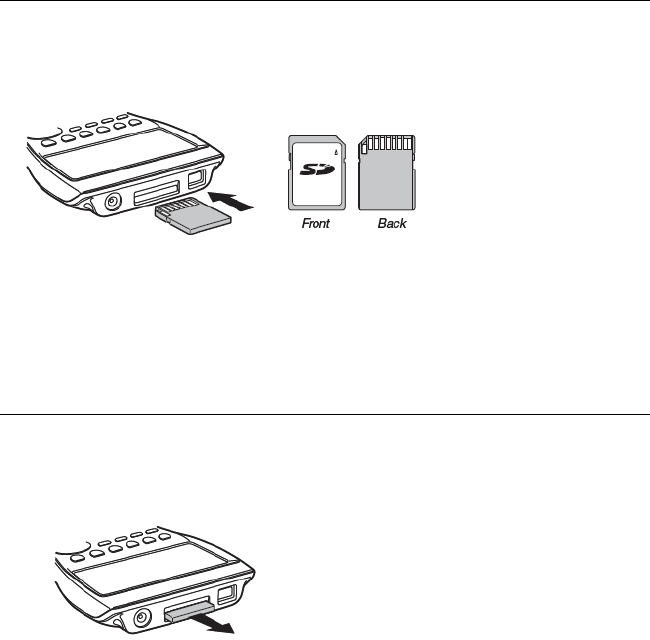 • Приложение чрезмерного усилия при извлечении SD-карты может повредить слот карты или