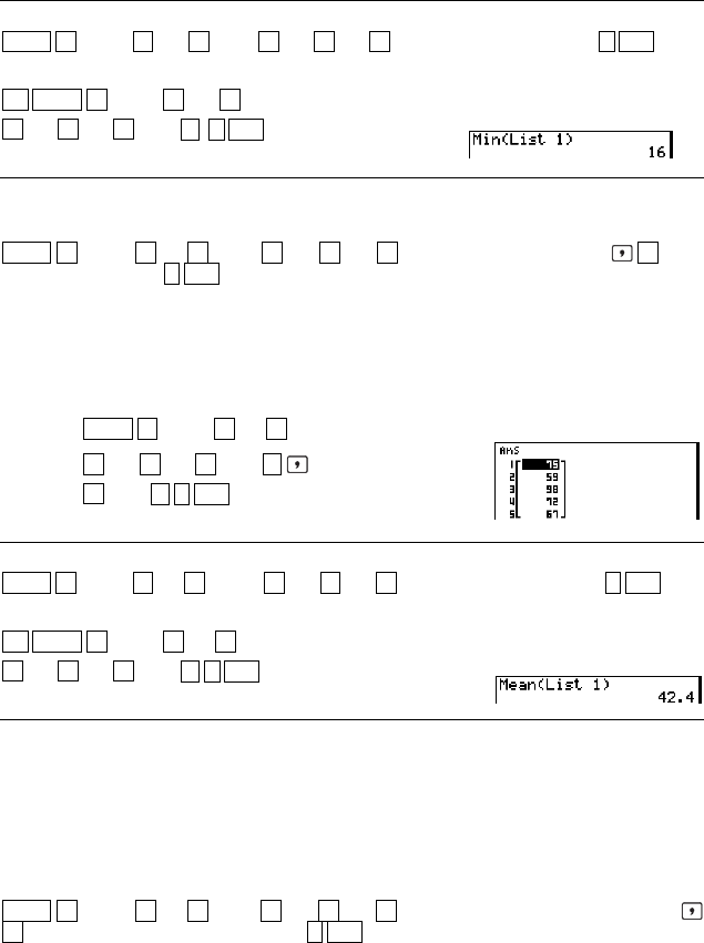 ● Найти минимальное значение в списке [OPTN]-[LIST]-[Min]
