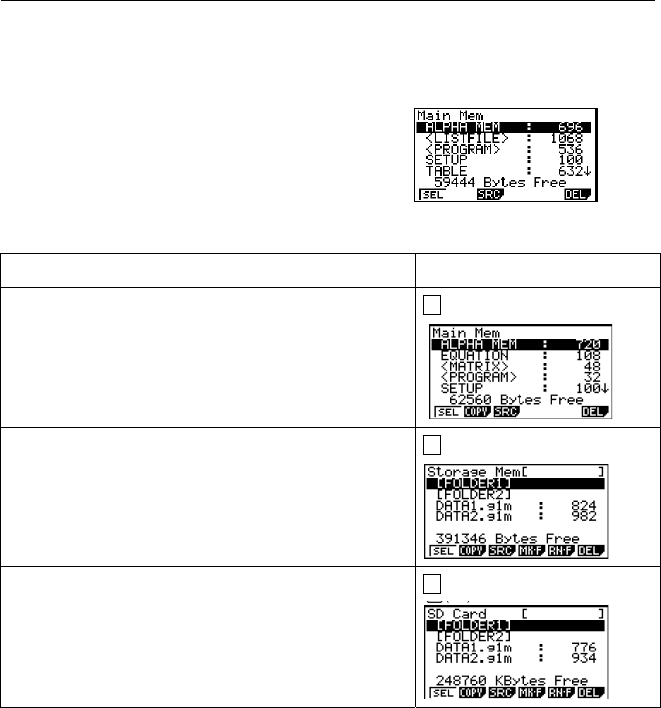SD} ... {отображает информацию памяти SD-карты} (только для fx-9860GII SD)