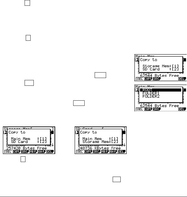 • Это действие отображает экран выбора флэш-памяти/SD-карты (только для fx-9860GII SD).