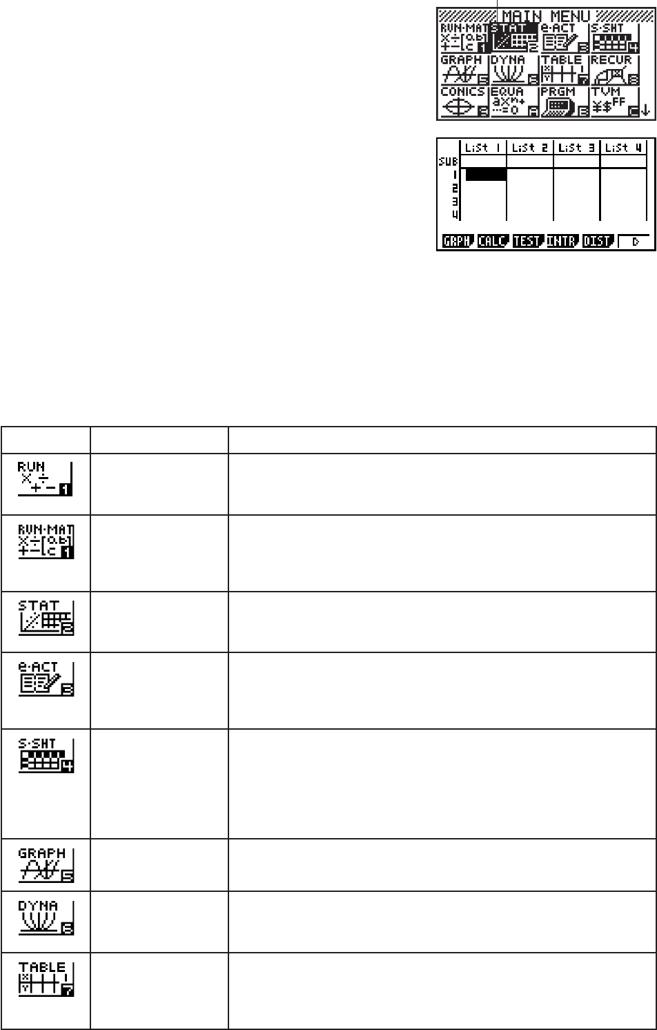 • Du kan også vælge en tilstand uden at fremhæve et ikon i hovedmenuen, hvis du i stedet