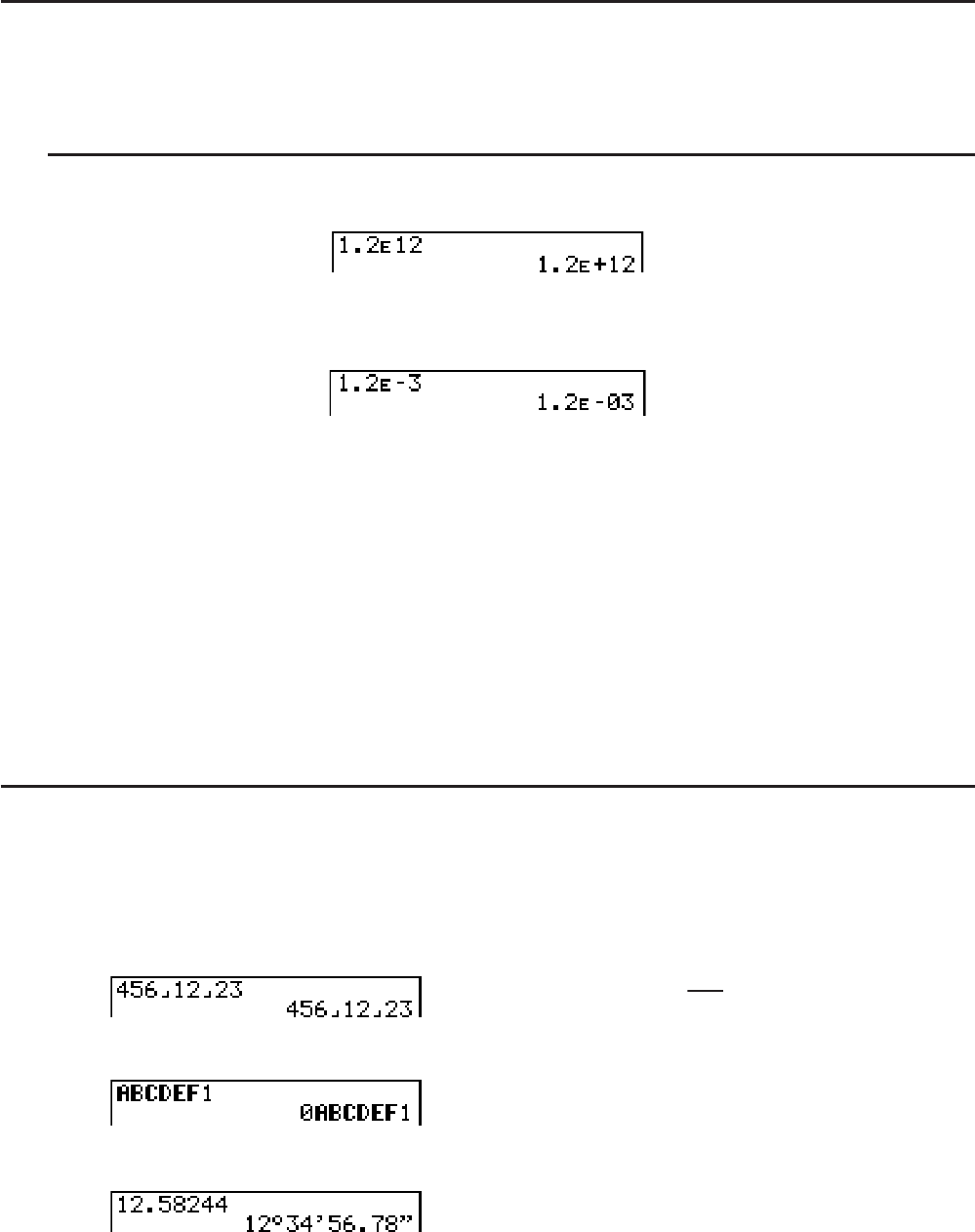 Der bruges specielle visningsformater til brøker, heksadecimaler samt til grader, minutter og