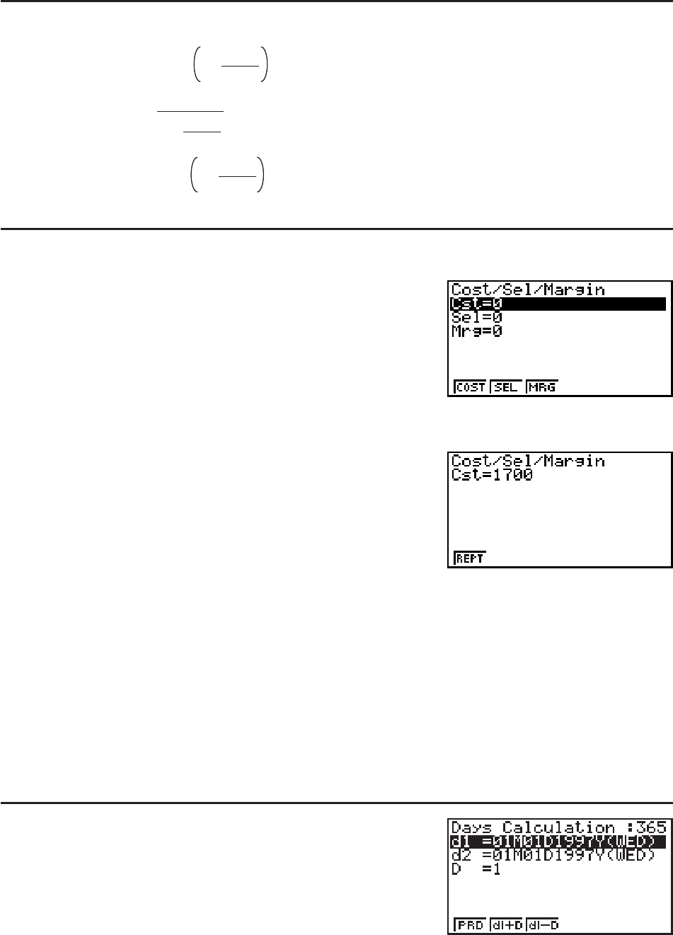 Tryk på (COST) i skærmbilledet Financial 2 for at få vist følgende indtastningsskærm.