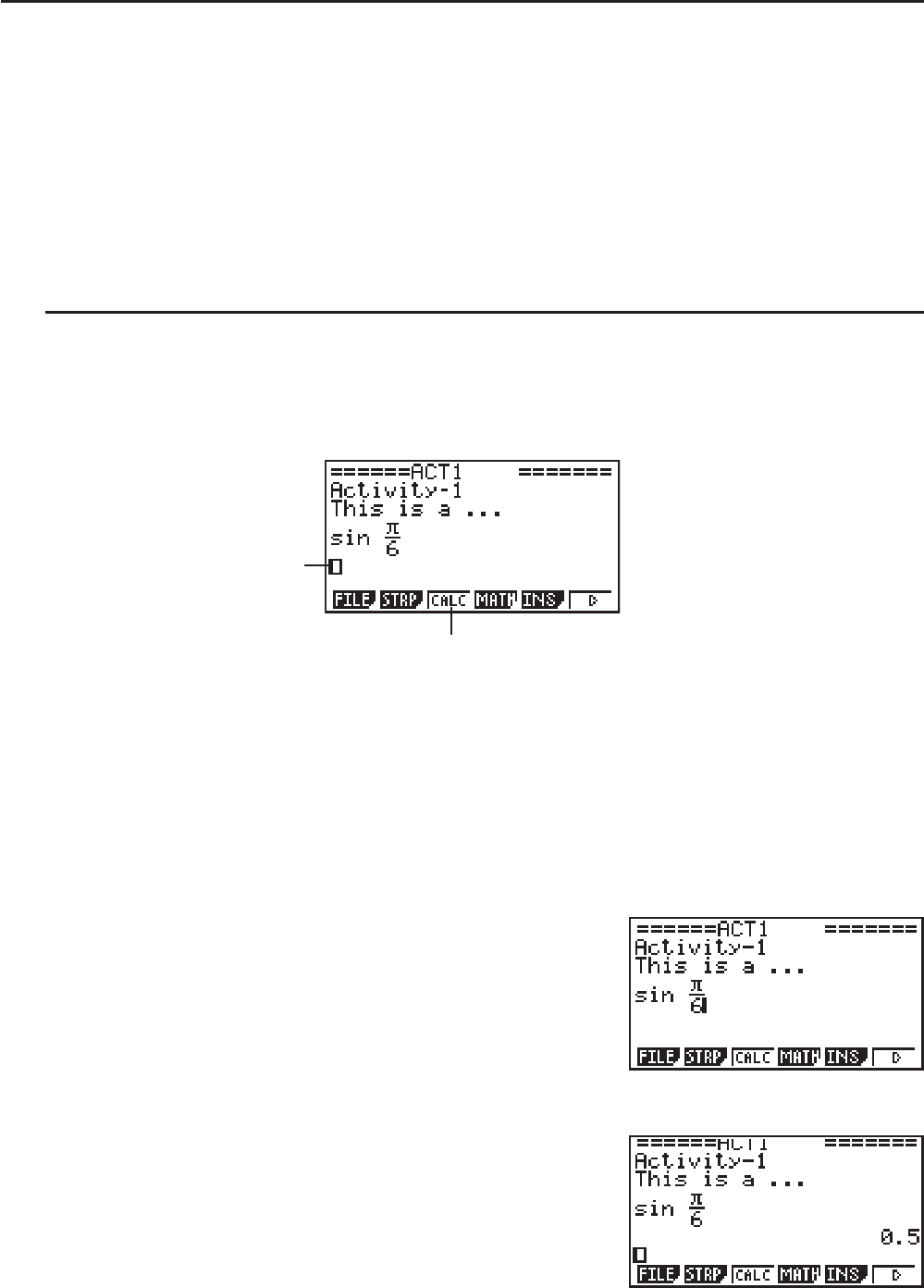 • Hvis du vælger {INS} og derefter {CALC} på funktionsmenuen, indsættes en ny