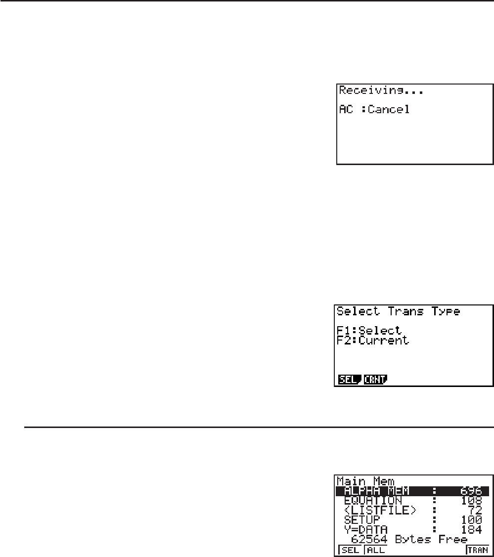 Tryk på (TRAN), mens hovedmenuen til datakommunikation vises på skærmen for at