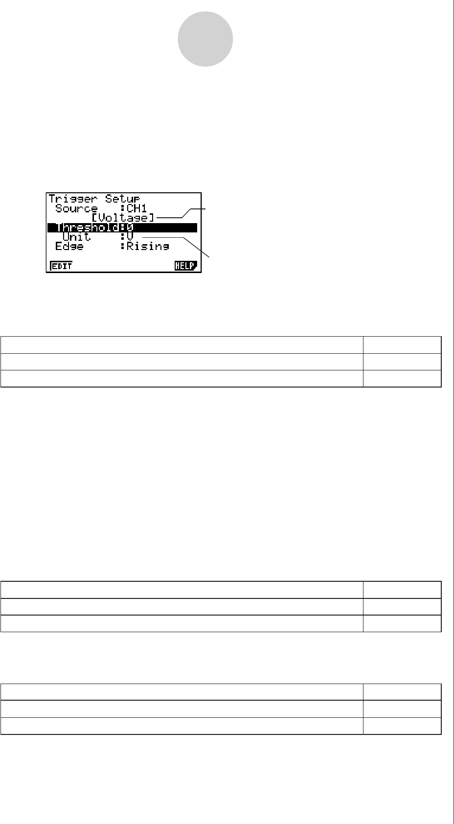 2. Press 1(EDIT) to display a dialog box for specifying the trigger threshold value, which is