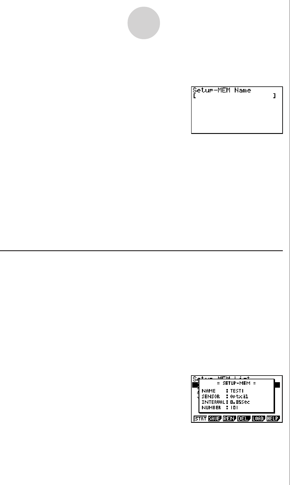 1-1), this saves the setup and returns to the setup memory list which includes the name